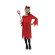 Kostým tvoří výrazné červené šaty s „roztrhaným“ zakončením a ozdobnými detaily u výstřihu i v pase, kde je látkový pásek na zavázání. Nechybí čertovské rohy na čelence a k tomu i stylový obojek kolem krku. Na fotce je navíc vidět i trojzubec – ideální doplněk pro pořádnou čertí show na Mikuláše, karneval nebo školní besídku 🎭✨
