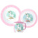 Dětská jídelní sada s kouzelným jednorožcem na duze obsahuje talíř, misku a hrnek. Vyrobeno z kvalitního plastu.