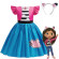 Šaty zaujmou veselou kombinací barev – růžový vršek s nabíranými rukávky, pruhovaný motiv a výrazná modrá sukýnka s třpytivým efektem. Nechybí ani roztomilý kočičí motiv, který potěší všechny malé fanoušky Gábi a jejích kouzelných dobrodružství. Šaty jsou ideální na oslavy, narozeniny, karneval nebo jen tak na hraní doma, kdy se z dětí stanou hrdinky vlastního příběhu 🎀